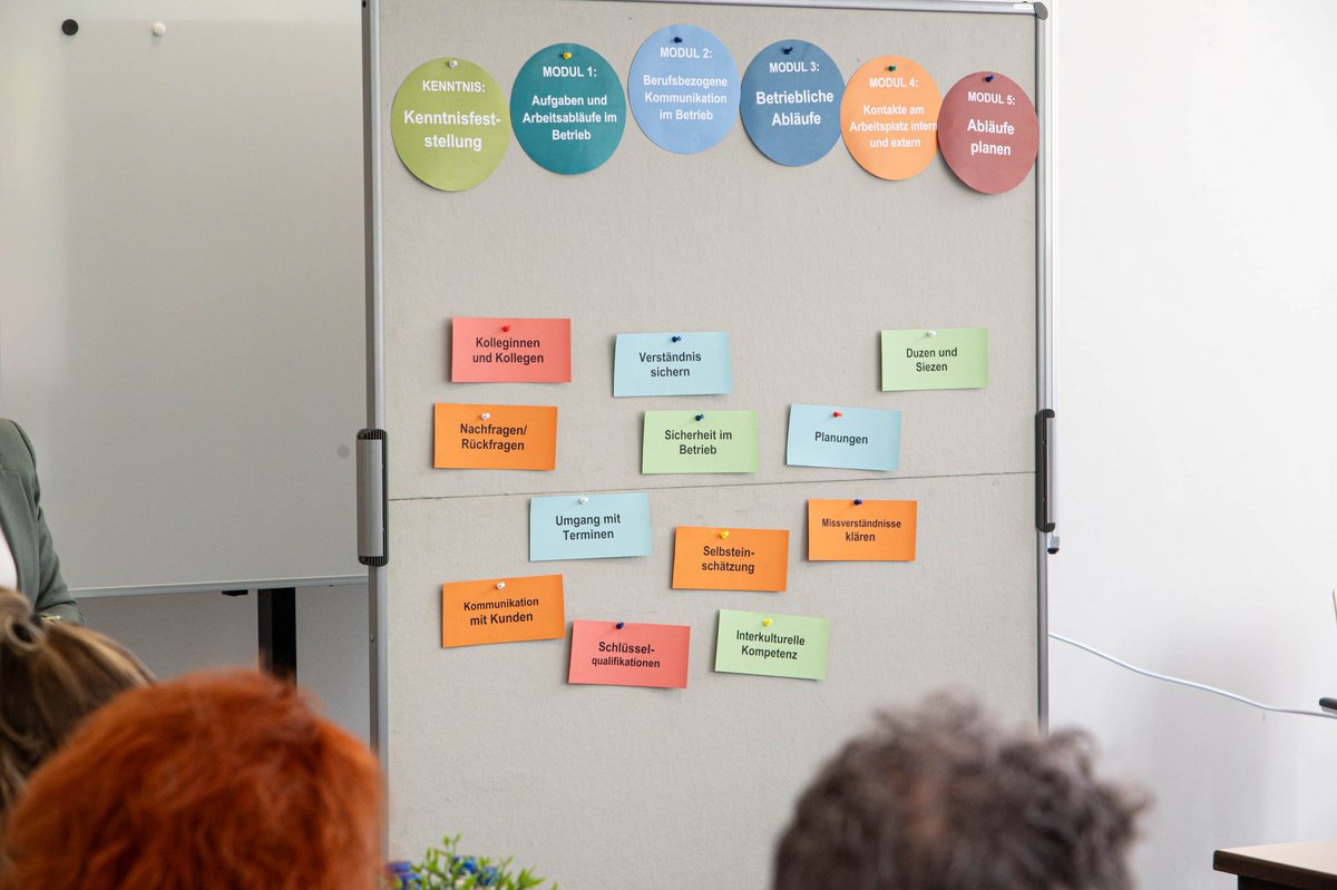 Dabei werden Migrantinnen und Migranten in 100 Unterrichtseinheiten über einen Zeitraum von 20 Wochen nicht nur wichtige Begriffe und Vokabeln für den Arbeitsalltag vermittelt, sondern sie erhalten auch Einblicke in die interkulturelle Kommunikation und den Umgang mit Kollegen und Vorgesetzten. Zusätzlich wird der Wortschatz zur Planung und Organisation von Arbeitsabläufen vermittelt – Fähigkeiten, die im Handwerk unverzichtbar sind.