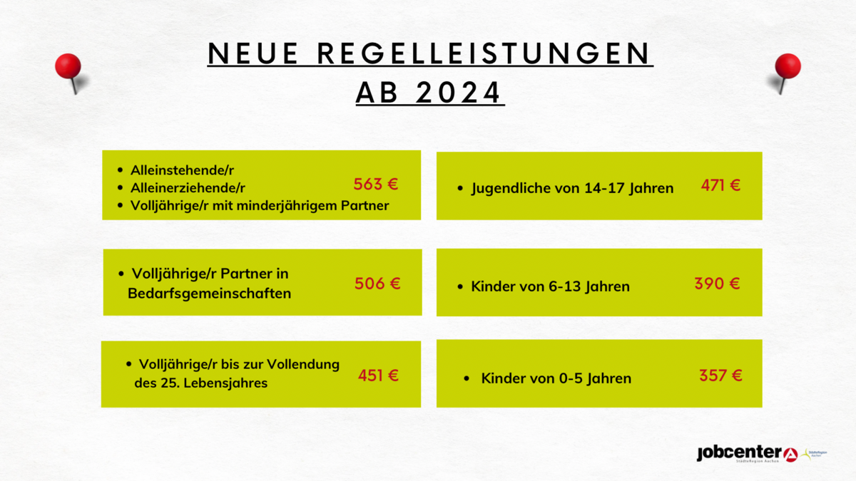 Die Regelbedarfe, welche ab dem 01.01.2024 gelten, entnehmen Sie bitte der untenstehenden Tabelle.
