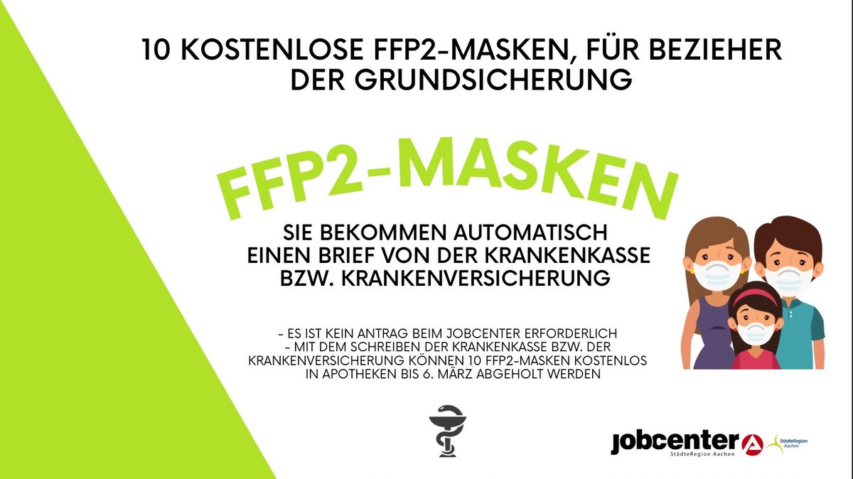 Alle Bezieher von Grundsicherungsleistungen der Jobcenter erhalten 10 FFP-2 Masken kostenlos. Grund ist die Änderung der Coronavirus-Schutzmasken-Verordnung.
