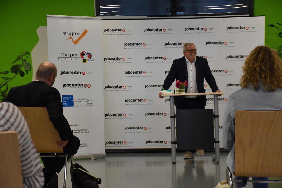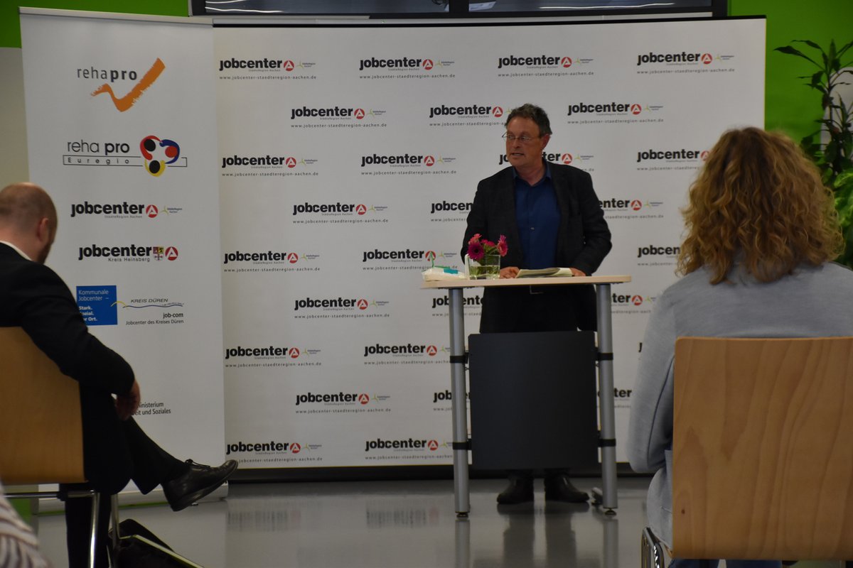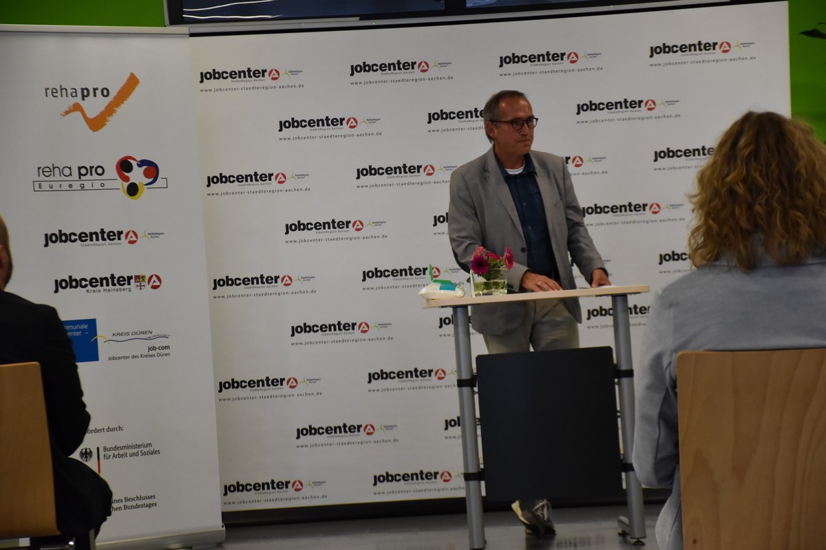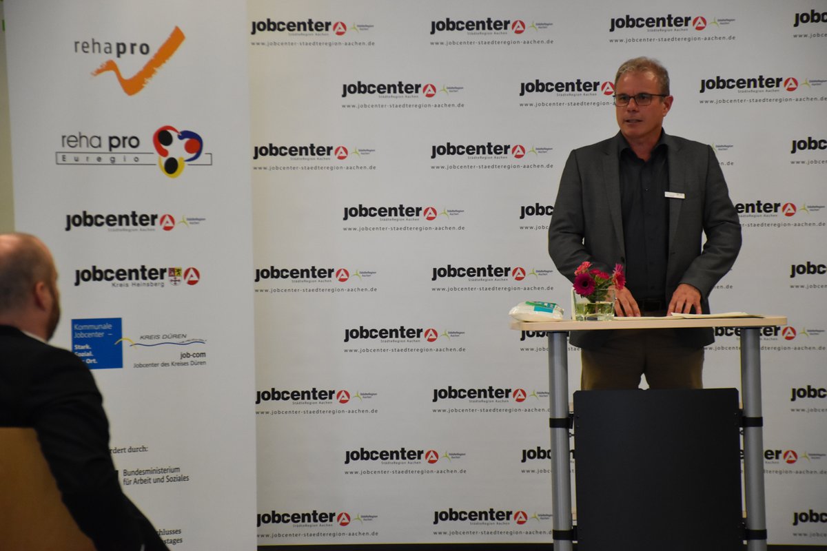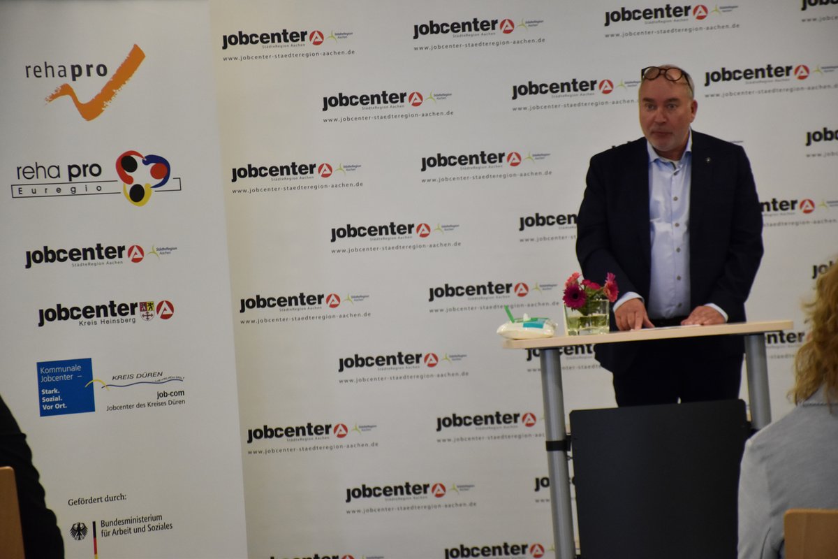 „Es geht um die Menschen und wir dürfen keinen vergessen!“ Mit diesen Worten eröffnete Stefan Graaf, Geschäftsführer des Jobcenters StädteRegion Aachen, die Auftaktveranstaltung des neuen Projektes „rehapro Euregio“, welches Menschen mit dauerhaften, gesundheitlichen Einschränkungen nicht nur den Zugang zum 1. Arbeitsmarkt, sondern auch die Teilnahme am gesellschaftlichen Leben ermöglichen soll. Die Jobcenter StädteRegion Aachen, Kreis Heinsberg und die job-com Düren sehen für diese Zielgruppe einen besonderen Entwicklungsbedarf hinsichtlich Betreuung und Unterstützung.