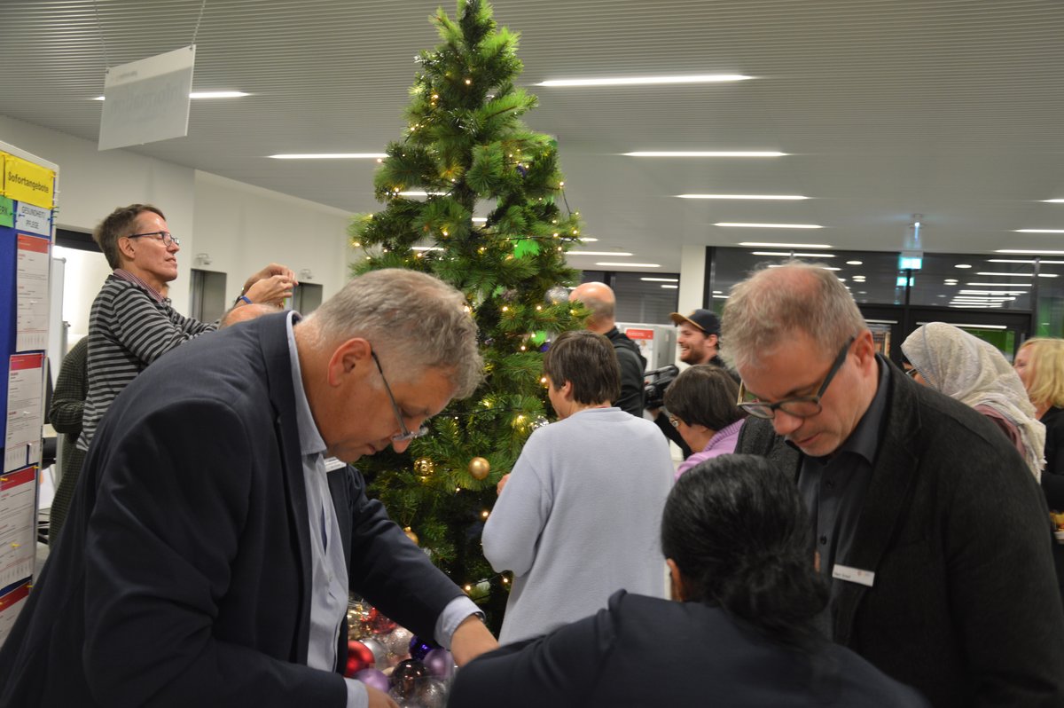 Dabei brachten die Bewohner der betreuten Wohngruppen nicht nur Weihnachtsschmuck an, sondern auch Ihre kleinen Wünsche. Die Mitarbeiterinnen und Mitarbeiter des Jobcenters können diese Wünsche nun erfüllen; Jobcenter-Geschäftsführer Stefan Graaf bringt die Geschenke wenige Tage vor Heiligabend dann höchstpersönlich in die Wohngruppen.